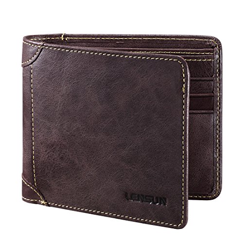 Best Seller! Men's Wallet, Lensun Slim Genuine Leather Wallet for Men, Gift Boxed, Dark Brown (QB-LZH-DB) Review